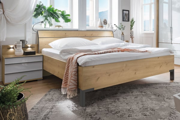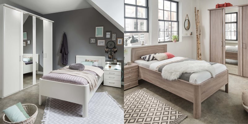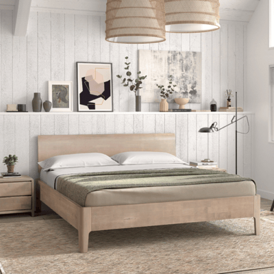 Nos lits existent également dans d'autres configurations en changeant la teinte du cadre, la tête de lit ou la forme des pieds, dans d'autres dimensions ou des essences de bois.
